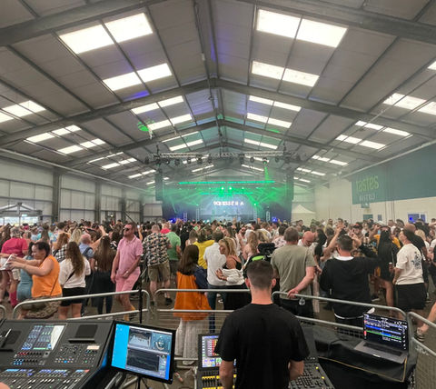 This festival was transformed by adding a larger stage, dynamic lighting in warmer colours appropriate to the genre, as well as a starcloth backdrop and a sectioned-off artist area. We also added audience lighting for safety and enhanced atmosphere.